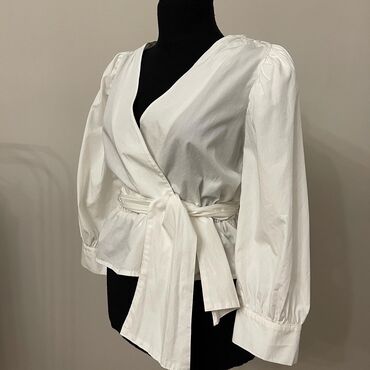 Рубашка женская с поясом-стрингом на талии. - Силуэт: свободный верх