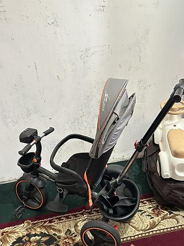 Подаю Детский трехколесный велосипед-каталка Haolaifu с родительской ручкой в идеальном состоянии - Яркий красный тент с плотной тканью и секцией из сетки для проветривания, глубокое опускание от...