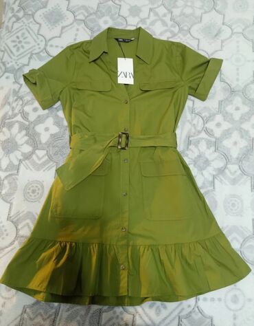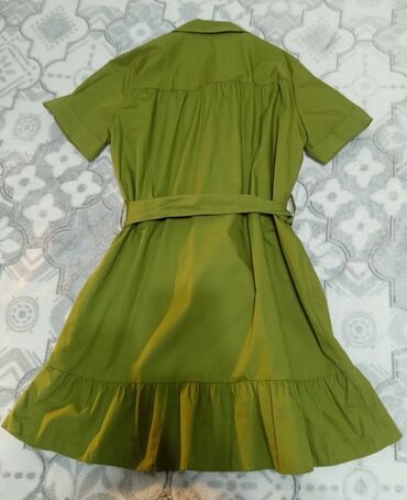 Трикотажное платье миди в рубчик. - Цвет: теплый беж/кэмел. - Фасон: приталенный силуэт, длина ниже колена, короткий рукав-реглан. - Горловина: высокая полустойка. - Трикотаж эластичный, мягкий, х...