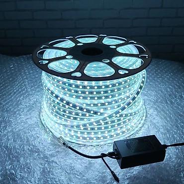 Светодиодная неоновая лента 220V Плоская неоновая лента подключается напрямую к сети 220V через штекер (необходим для каждого отрезка, стоимость — 100 сом). Поставляется в рулонах по 100 метров и ...