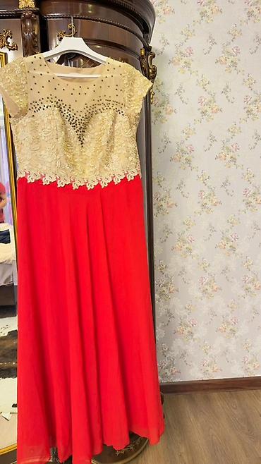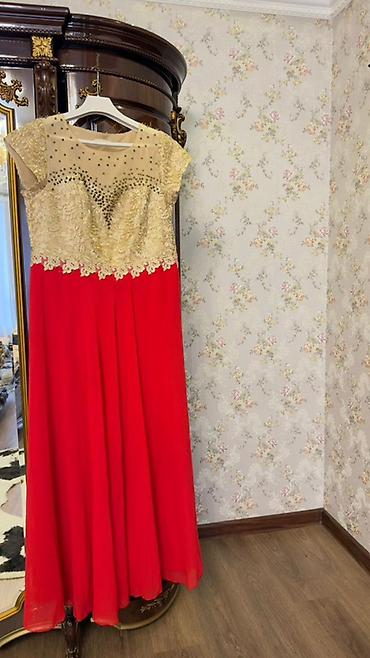 - Юбка: многослойный шифон насыщенного красного цвета, свободный А‑силуэт с мягкими складками, легкая струящаяся посадка.