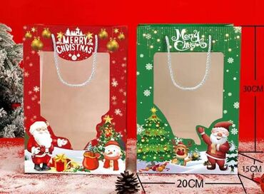 - Вертикальные пакеты с плотными шнурками-ручками. Размер: 30 × 20 × 15 см (высота × ширина × глубина). Доступны красный и зелёный варианты.