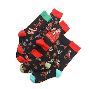 Яркие носки с принтами: Дед Мороз, олени, елочки, Снеговик, Санта Клаус.