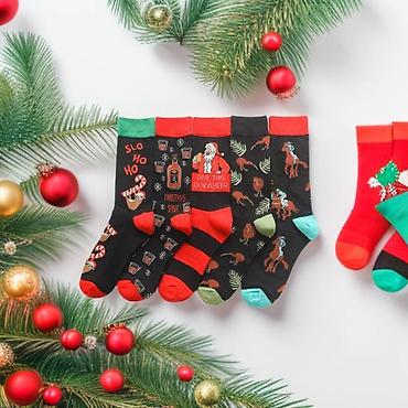 🎄 Набор мужских новогодних носков — 5 пар Яркие носки с принтами Деда Мороза, оленей, елочек, Снеговика и Санты. ✅ 80% хлопок + синтетика, мягкие и эластичные ✅ Размер 41–47 — подростку, мужчине и...