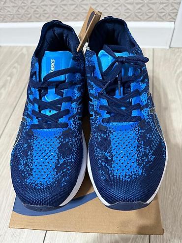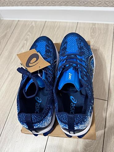 - Цвет: синий/темно‑синий с черными и белыми акцентами, фирменные полосы ASICS