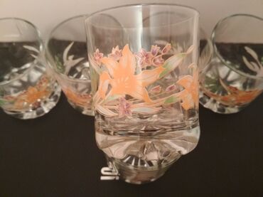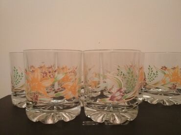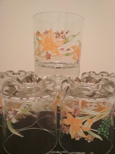 Стеклянные стаканы, красного цвета с золотым декором, 5 штук, целые, без сколов. есть ещё другие варианты, новые турецкие стеклянные фужеры на высокой ножке, другая посуда возможен обмен на продук...