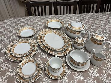 Набор фарфоровой посуды с золотым кантом - Материал: тонкий фарфор