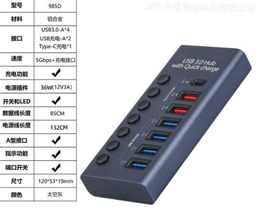 USB 3.0 HUB док-станция расширения 7 портов с переключателем зарядка