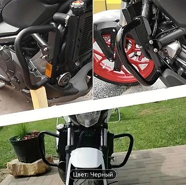 - Назначение: защита двигателя, радиатора и нижних элементов передней части мотоцикла при падении/скольжении.