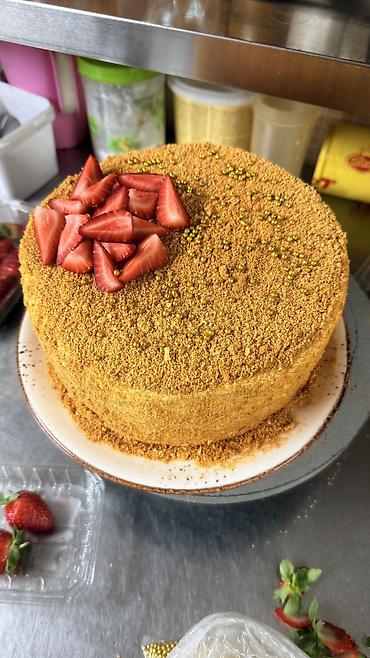 МЕДОВЫЙ ТОРТ вес 1.400кг домашний вкусный и для магазинов можно - Классические медовики: круглые торты с крошкой из медовых коржей, каждый в индивидуальной пленочной упаковке на подложке. )))