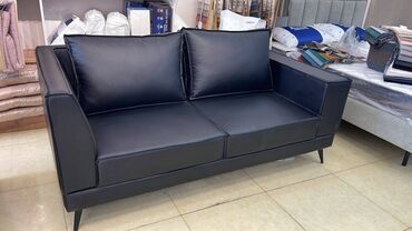 Элегантный двухместный диван черного цвета, идеально подходящий для гостиной, офиса или приемной. Оснащен мягкими подушками для сиденья и спинки, обеспечивающими комфорт. Материал обивки имитирует ...