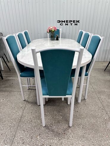 Акция‼️Акция ‼️ 23500с комплект‼️ Комплект на 8 персон😍☑️ 📞 Адрес ош базар Бейшеналиева 22/5 Обеденная группа в современном стиле: прямоугольный стол под «белый мрамор» и стулья с мягкой обивко...