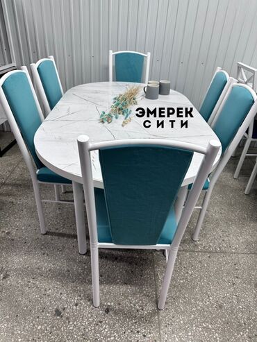Акция‼️Акция ‼️ 23500с комплект‼️ Комплект на 8 персон😍☑️ 📞 Адрес ош базар Бейшеналиева 22/5 Обеденная группа в современном стиле: прямоугольный стол под «белый мрамор» и стулья с мягкой обивко...