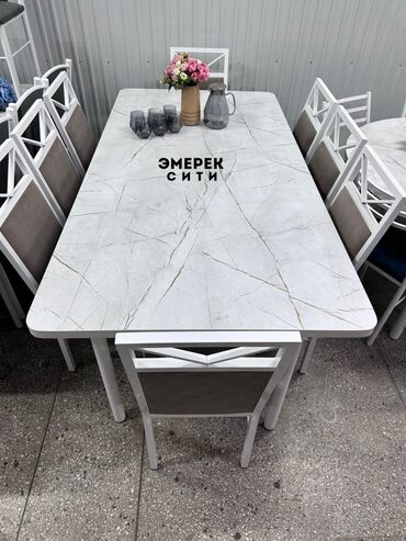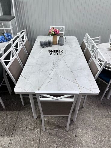 Акция‼️Акция ‼️ 23500с комплект‼️ Комплект на 8 персон😍☑️ 📞 Адрес ош базар Бейшеналиева 22/5 Обеденная группа в современном стиле: прямоугольный стол под «белый мрамор» и стулья с мягкой обивко...