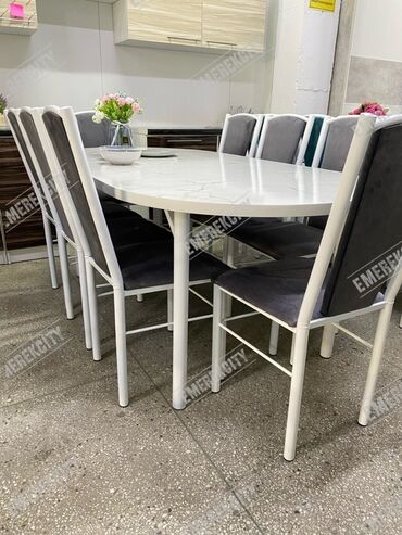 Акция‼️Акция ‼️ 23500с комплект‼️ Комплект на 8 персон😍☑️ 📞 Адрес ош базар Бейшеналиева 22/5 Обеденная группа в современном стиле: прямоугольный стол под «белый мрамор» и стулья с мягкой обивко...