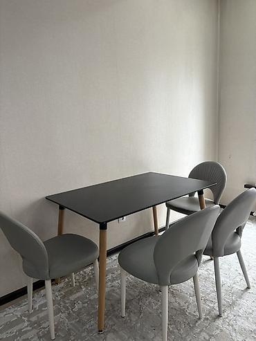 Столовый комплект: стеклянный стол и 4 стула. стол 4200сом. стулья по 600 каждая - Стол прямоугольной формы с закруглёнными углами, столешница из прозрачного стекла на металлическом каркасе. - Ц...