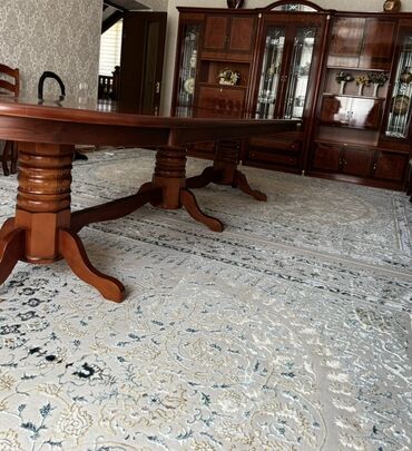Продаётся элегантный прямоугольный обеденный стол светлого оттенка с окантовкой и 6 мягкими резными стульями. Изготовлен на заказ от «Мебель Карагач», в отличном состоянии, использовался мало, треб...