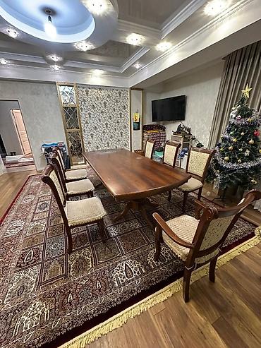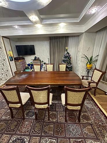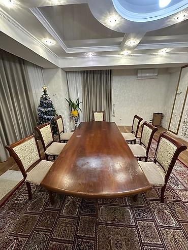 Продается стол со стульями, хорошем состоянии. стулья 12 шт.мягкие с чехлом.стол длина 2.8 на 1 м чехол и клеёнка.В общем готовый обеденный стол подходит для ресторанов и чайхане и для дома. прошу...