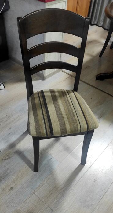 - Обивка стульев текстильная, в полоску (бежево-коричневая гамма), нейтрально сочетается с разным интерьером.