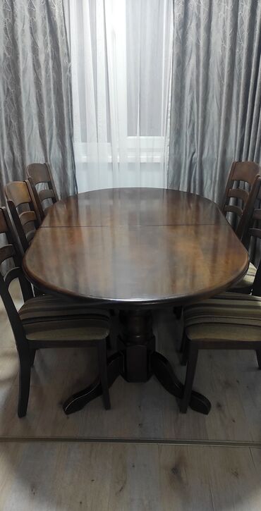 Обеденная группа: овальный деревянный стол + 6 стульев