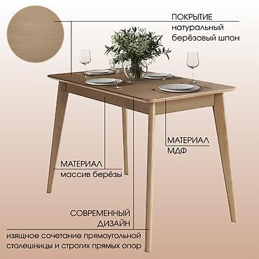Каркас стола изготовлен из массива сибирской березы, столешница - из МДФ, облицованного шпоном березы с красивой фактурой, выгодно подчеркнутой благородным естественным тоном.