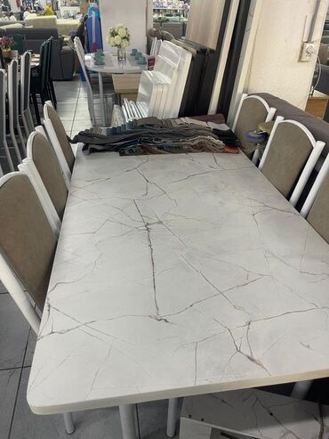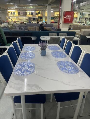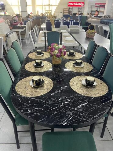 ОвальнаяОбеденный стол с мраморной столешницей и комплектом стульев. Стол имеет овальную или прямоугольную форму и доступен в различных цветах, включая белый, черный и серый. Прочная столешница из искусственного мрамора придает элегантность и легко чистится. Стулья с мягкой обивкой обеспечивают комфорт во время еды. Идеально подходит для создания уютной обеденной зоны в доме или квартире.