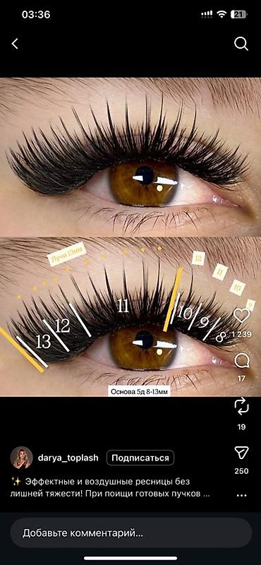 Наращивание ресниц - Классическое и объемное наращивание (2D–3D) с аккуратной схемой удлинения по глазу. - Эффект: выразительный, но естественный изгиб, плавный переход длины от внутреннего к внеш...