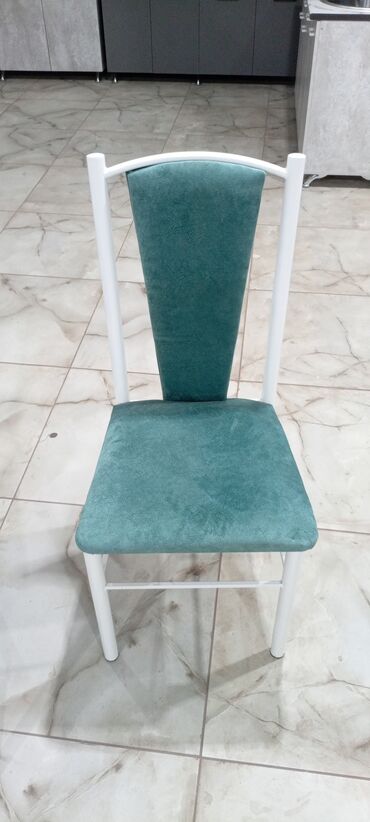 Стулья с мягкими сиденьями разных цветов: серого, бирюзового и темно-серого. Каркас стульев выполнен из металла, окрашенного в белый цвет. Стулья имеют удобную спинку с тремя перекладинами. Легкие ...