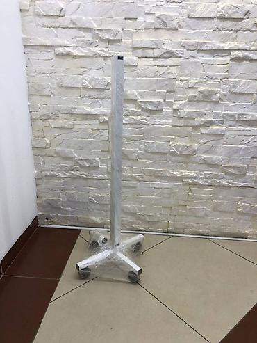 Передвижной. Имеет стойку с колесами.