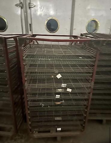 - Секции/листы клеток и стеллажи: металлические каркасы и полки из проволочной сетки на колесных/опорных рамах — для содержания, выращивания или временного размещения птицы. Подходят для модульной сборки.