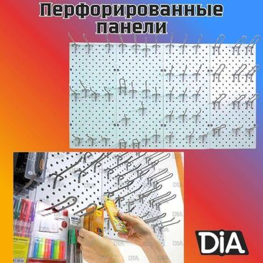 Перфорированные панели возможно установить на любое свободное место в различной компоновке (стена, колонна, торговое оборудование и тд)меет большой ассортимент различных комплектующих, что расширяет область применения.