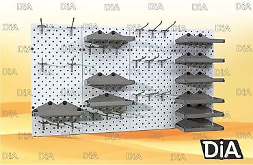 Перфорированные панели возможно установить на любое свободное место в различной компоновке (стена, колонна, торговое оборудование и тд)меет большой ассортимент различных комплектующих, что расширяет область применения.