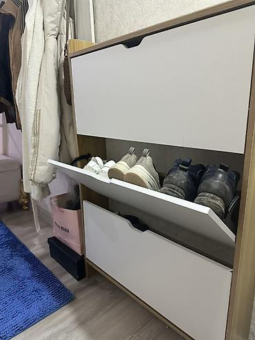 - Компактная тумба для обуви с тремя откидными ящиками.