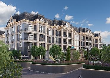 Инфраструктура на территории: прогулочные парки, детские и спортивные площадки, пространства для колясок и велосипедов, открытые лаунж-зоны. Отдельная зона с бассейнами и клубным домом