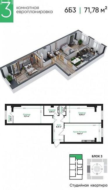 Очень СРОЧНО ‼️ Продается 3х комнатная квартира студия Сдача ПСО Через 2 Месяца район: АЮ гранд (Л.Толстого/Ч.Валиханова) ЖК Есентай от СК Артвин общая площадь: 71.78м2 этаж: 5 из 12 все ком...