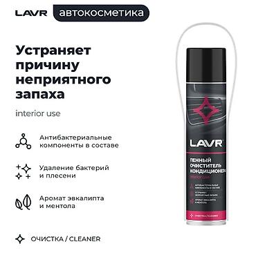 Пенный очиститель кондиционера антибактериальный LAVR – специальное средство для удаления бактерий и плесени в труднодоступных местах системы вентиляции и кондиционирования автомобилей: воздуховодах, патрубках, испарителях, дренажных трубках. Устраняет загрязнения и неприятный запах в системе. Подходит для самостоятельного применения.