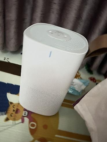 - Компактный настольный/напольный очиститель воздуха в белом корпусе.