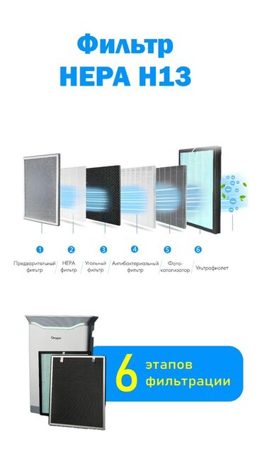 Воздухоочиститель Напольный, Более 50 м², НЕРА, Антиаллергенный, Антибактериальный