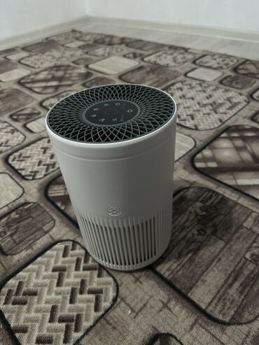 Компактный цилиндрический очиститель воздуха с верхней панелью сенсорного управления.