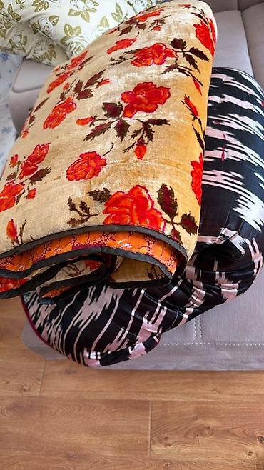 Одеяла ватные стёганые двусторонние б/у состояние среднее цена за два - 1000 сом размеры: цветное 140*195 серое 120*190 - Размер односпальный/полуторный. - Наполнитель — классическое ватное с...