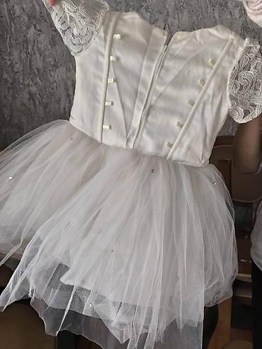 Нарядное детское платье в кремово-молочном оттенке. Подойдёт от 7 до 11 лет . б/ у цена 1500 сом вместе с туникой - Размер: на вешалке указан 56 (ориентируйтесь по меркам/фото). - Верх: плотный...