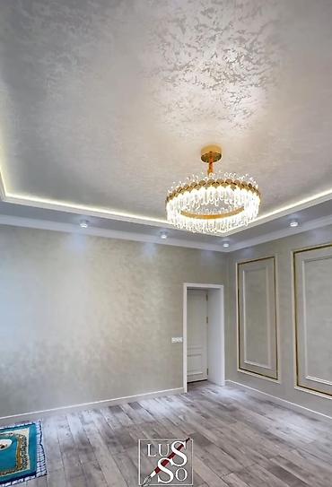 - Интерьер: просторные комнаты в светлых тонах, фактурные стены с декоративными молдингами и золотистыми акцентами, потолок с нишей, скрытой LED-подсветкой и центральной хрустальной люстрой. Напольное покрытие под натуральное дерево.