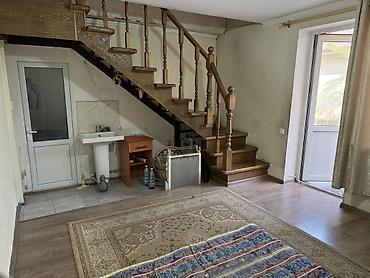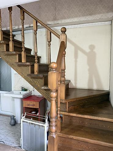 - Деревянная маршево‑поворотная лестница с балясинами и перилами, ведёт на верхний уровень/антресоль.