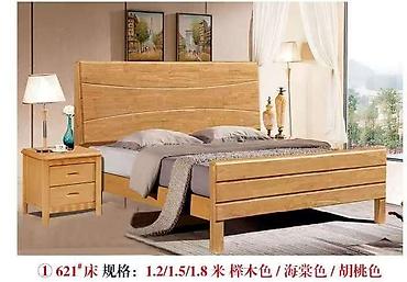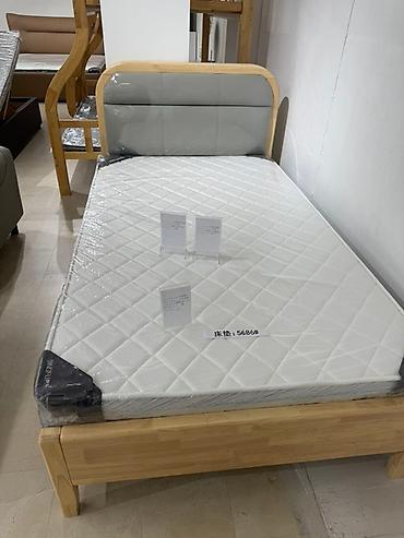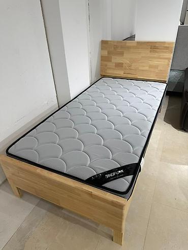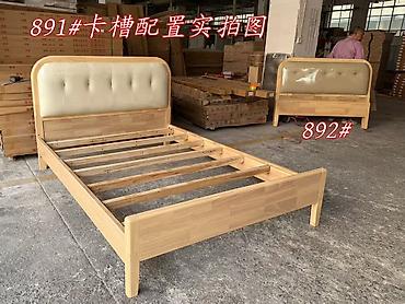 - Кровать из массива (варианты изголовья: полностью деревянное или с мягкой серо-бежевой вставкой).