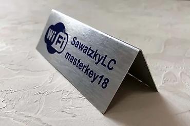- Персонализация: наносим название организации, номер кабинета, должности; возможны логотипы и пиктограммы.