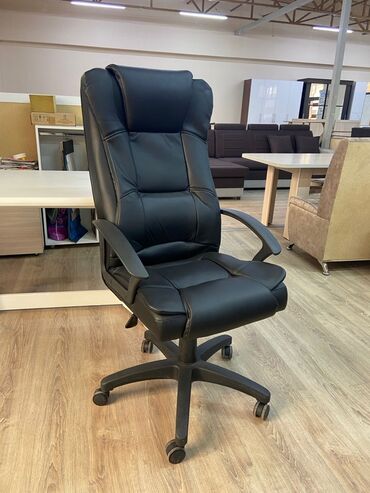 Офисное кресло, С колесиками, цвет - Черный, Экокожа