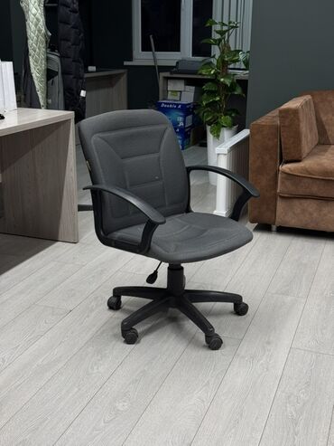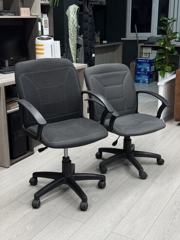 Офисные кресла на колесиках, тканевая обивка, цвет темно‑серый.