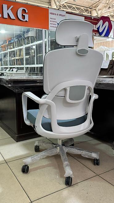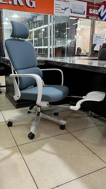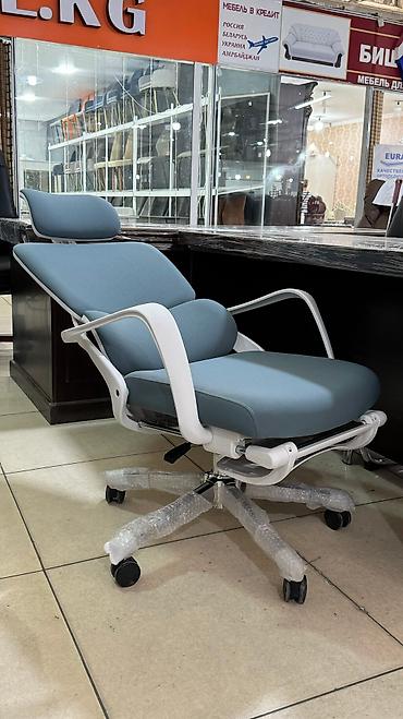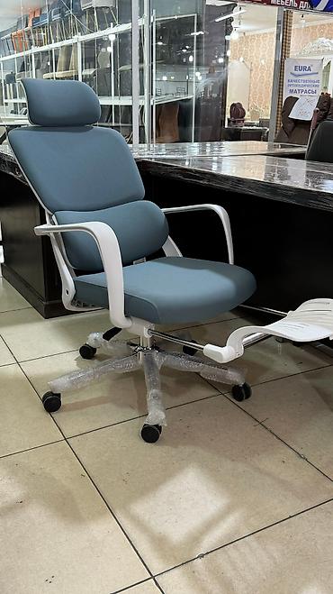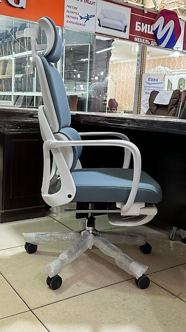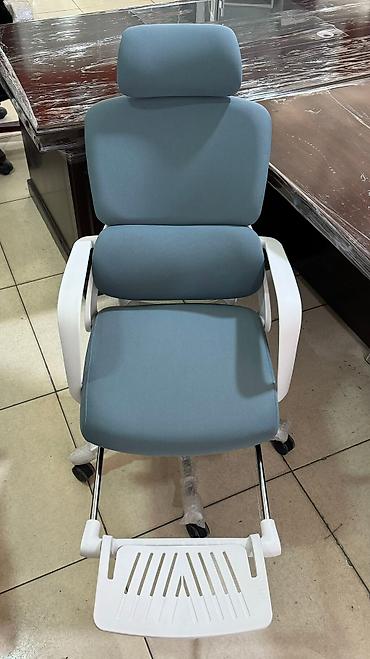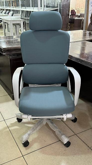 Офисное Кресло Руководителя с подножкой выполнено в современном дизайне из голубой износостойкой ткани премиум класса, которая легко моется.