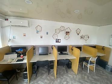 - Модульные кабинки с индивидуальными столешницами и боковыми/задними экранами для приватности и шумопоглощения.
