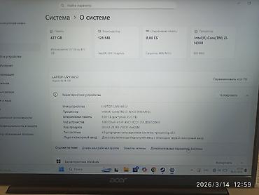 💻 Acer /Intel(R) i3-1115G4 @3.00GHz / 8GB / 256GB 🔹 Характеристики: •